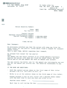 IRS Letter 3323C – Notice to Non-Electing Spouse of Final Determination on Innocent Spouse Relief Claim