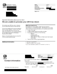 - The tax return you filed for the tax year shown on the notice contained the SSN of a person who was shown as deceased by SSA records in a prior tax year. This could be the result of identity theft or a simple keying error of your SSN (or your spouse’s SSN, if a joint return).