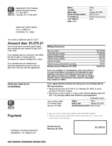 The IRS is requesting payment of the balance due on your individual income tax return, including any penalties charged.