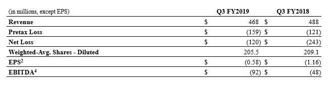 Fiscal 2019 Third Quarter Results From Continuing Operations